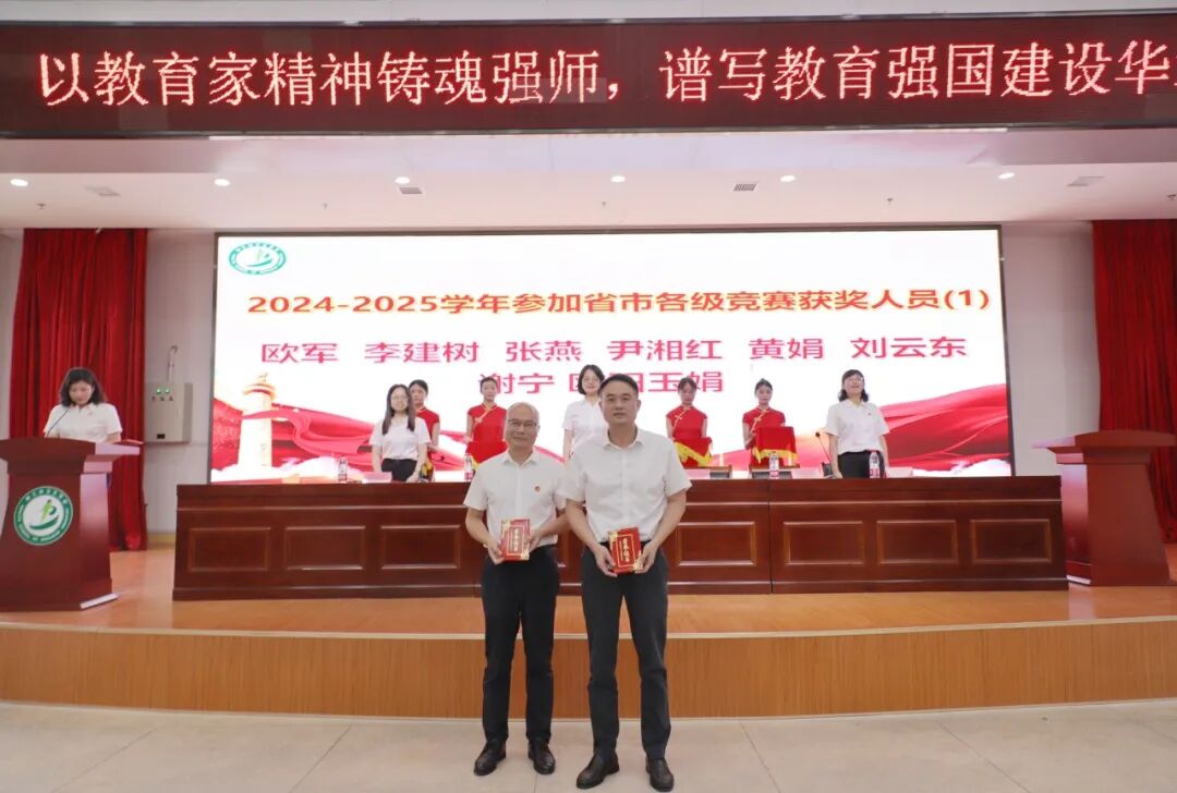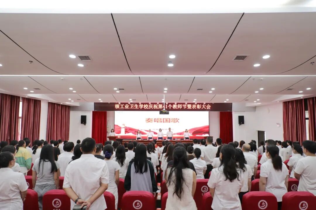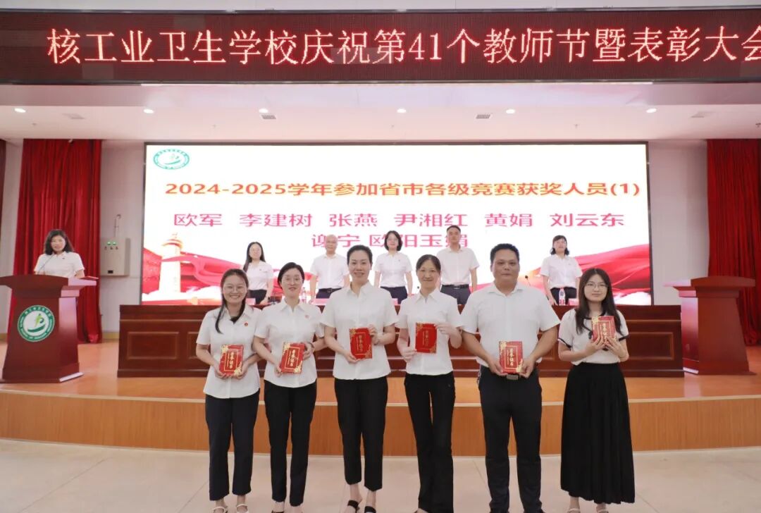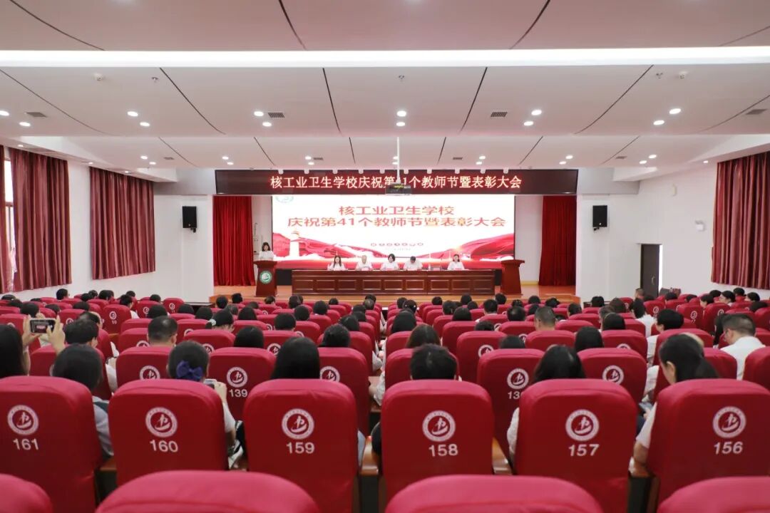 为贯彻落实教育家精神铸魂强师行动,谱写教育强国建设华章,核工业卫生学校于2025年9月9日下午在精技楼八楼会议室召开第41个教师节庆祝暨第七届十佳教师(教育工作者)表彰大会。出席大会的校领导有南华大学附属南华医院党委委员、学校校长廖红伍,南华大学附属南华医院党委委员、学校党总支书记欧军,学校党总支副书记李建树,副校长罗小艳、敖琴英、朱晓琴。大会由副校长罗小艳主持,全体教职工及学生代表参会。