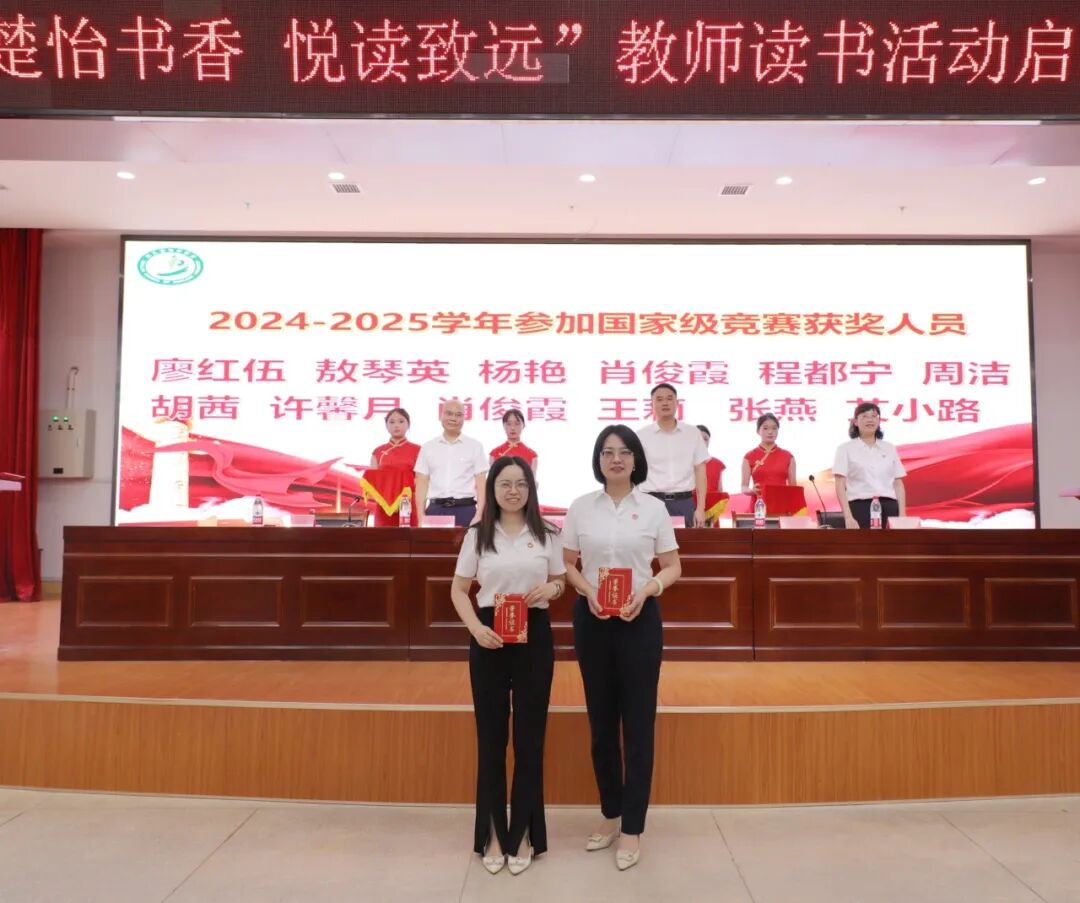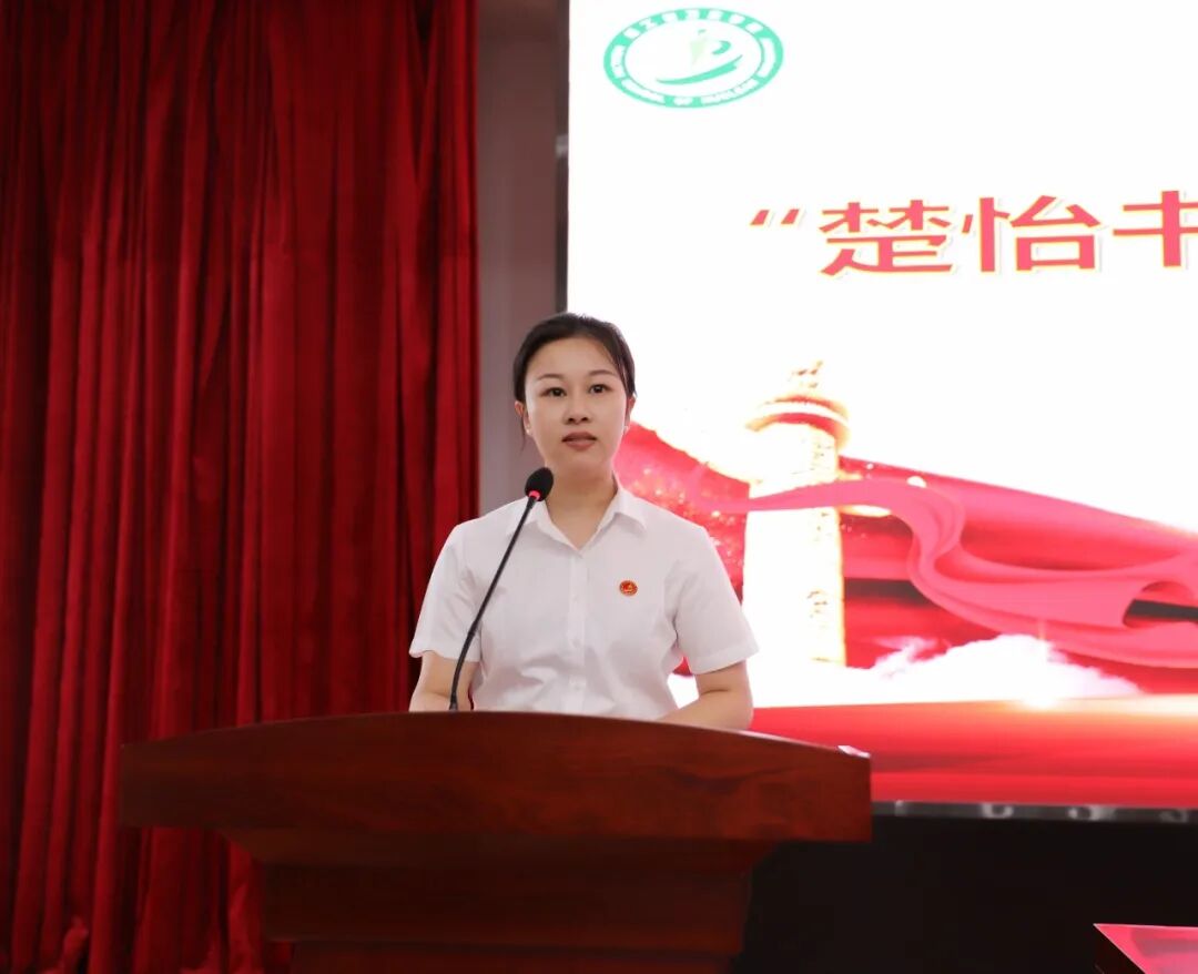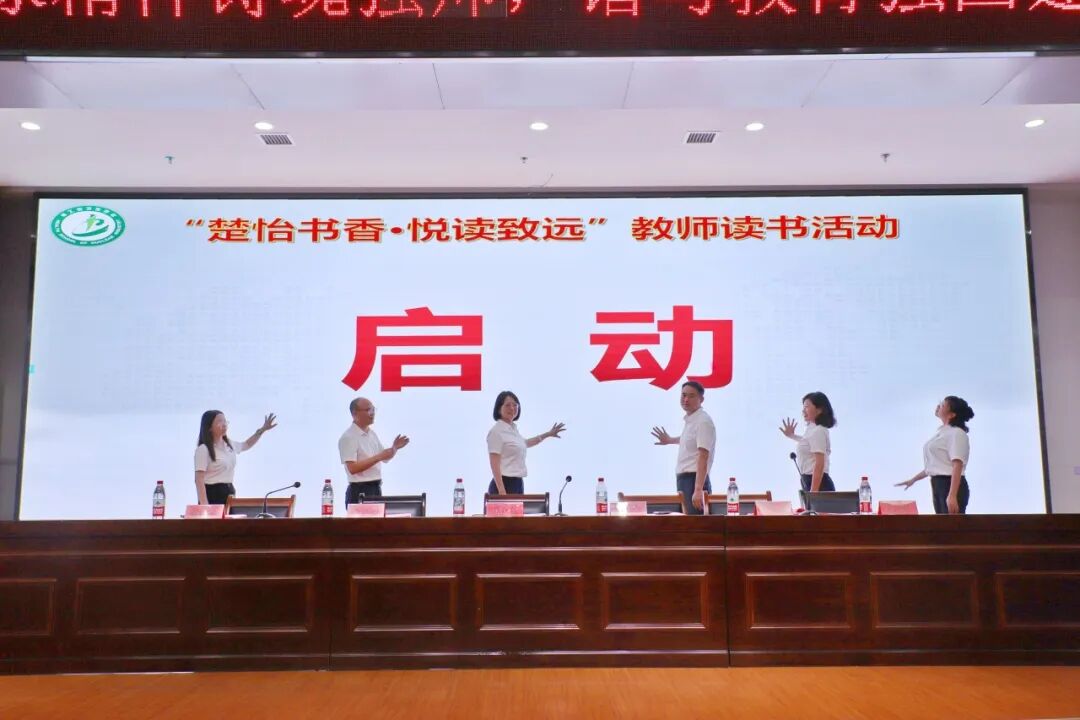 现任教务科科长胡茜宣读楚怡读书行动倡议书,并在会上为“楚怡书香·悦读致远”教师读书活动启动仪式揭幕。