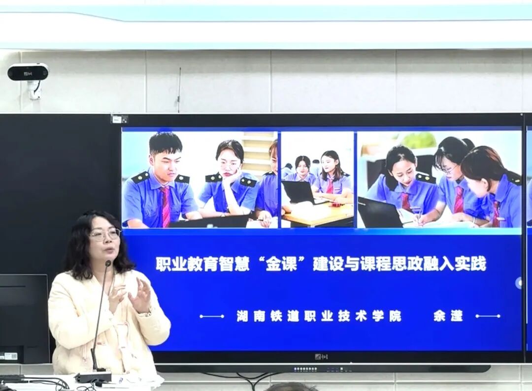 会上,国家课程教学名师、湖南铁道职业技术学院余滢教授,围绕“智慧金课建设与课程思政融入实践”主题,立足教育数字化发展趋势,系统阐释了如何借助大数据、人工智能等技术手段,打造具有高阶性、创新性与挑战度的“智慧金课”。同时,她结合案例,深入剖析了如何在知识传授中自然融入价值引领,实现“润物无声”的育人效果。通过教学场景的智能化重构与思政元素的精准植入,为教师提供了从理念到实践的完整路径。