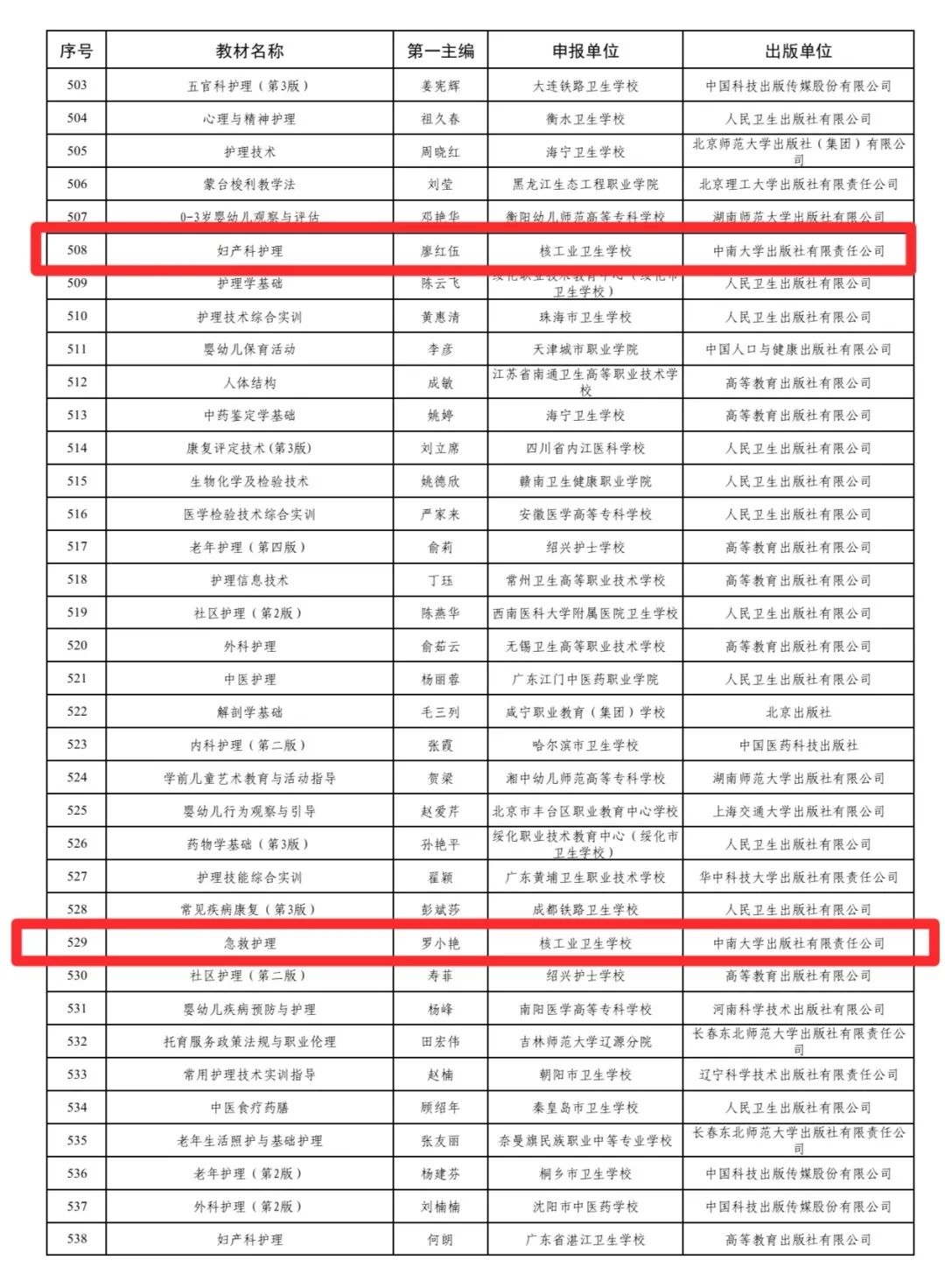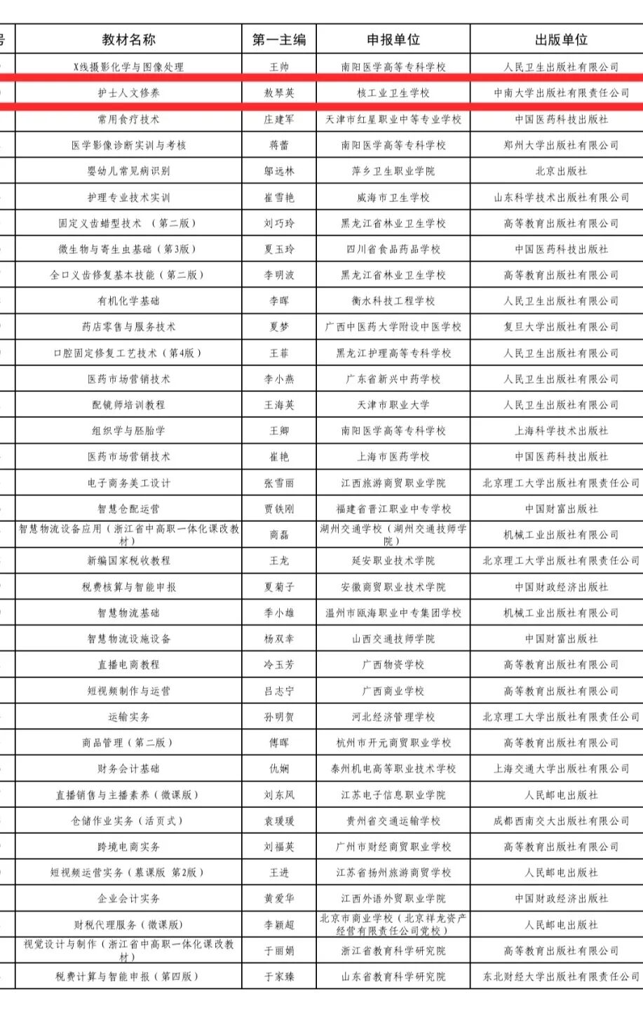 近日,教育部职业教育与成人教育司公布了第二批“十四五”职业教育国家规划教材书目。核工业卫生学校三本主编教材成功入选。