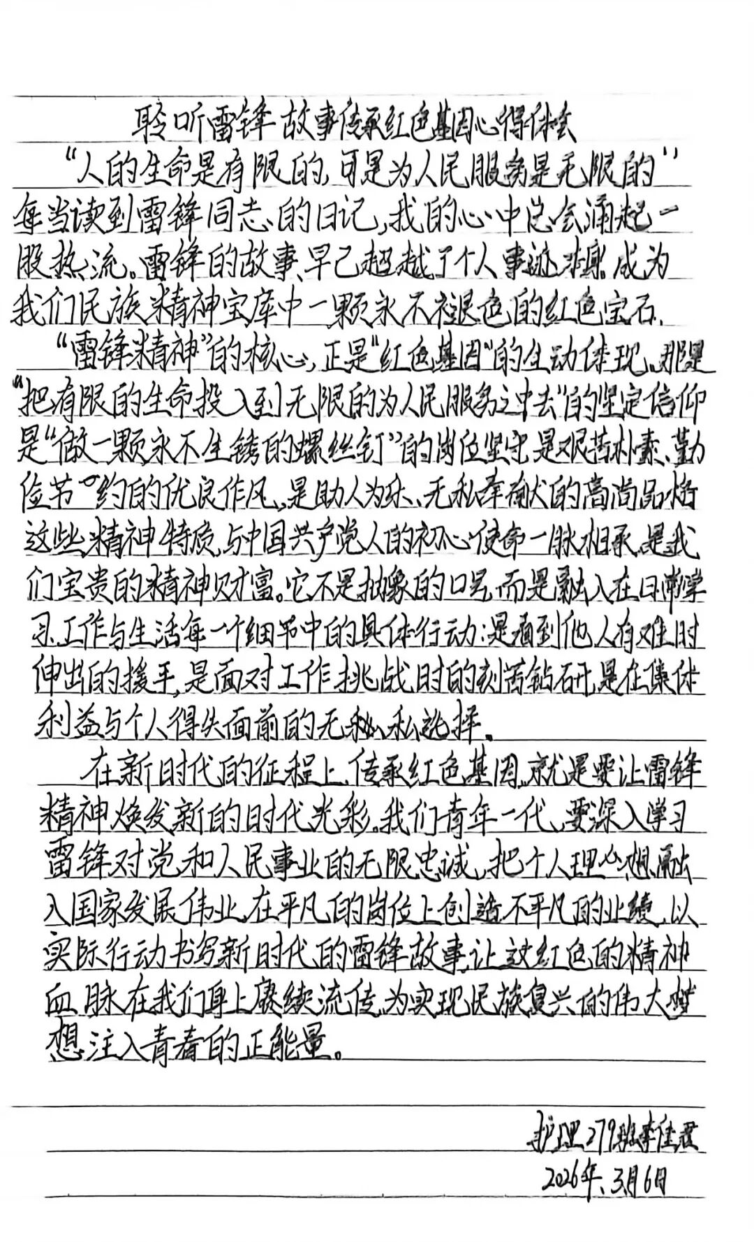 活动结束后,团员青年们纷纷拿起笔,将参与过程中的所见、所闻、所思、所感凝聚于文字,撰写心得体会。字里行间既有对雷锋精神内涵的全新解读,更有对未来践行雷锋精神的郑重承诺。 一篇篇真挚的心得,成为活动成效最生动的注脚,也让雷锋精神真正内化为青年的思想自觉与行动自觉。
